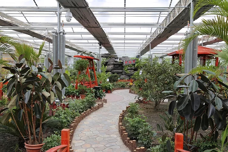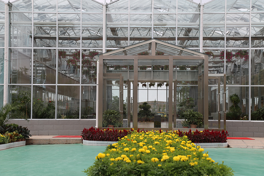 該智能溫室大棚占地約6000平方米,分為一號廳和二號廳。其中一號廳是新建的有錯層的玻璃溫室,分為盆栽花卉、盆栽果樹區、沙生植物區、熱帶風情區、家庭園藝區等功能區。二號廳由舊溫室改造而成,頂部為陽光板,四周立面為玻璃,配置了智能控制系統,有無土栽培區、育苗區、采栽體驗區等功能區。智能溫室全部配備了內、外保溫系統,冬季保溫,比普通溫室更節能。溫棚內移動苗床一次育苗30萬株,可供給巴彥霍德406座溫棚,一定程度上帶動了農民增收。不論是熱帶植物、水果還是沙漠植物,在這里你可以一覽無余,一年四季感受綠色勃勃生機。