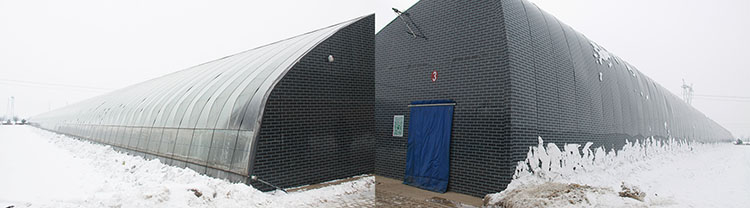 冬季晴天外界-30℃下,室內溫度在8℃以上,冬季正常天氣條件下可不加溫進行果菜類作物生產。