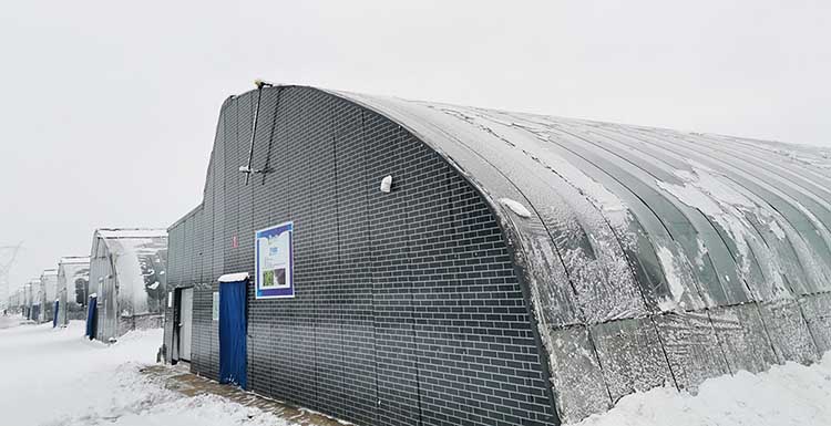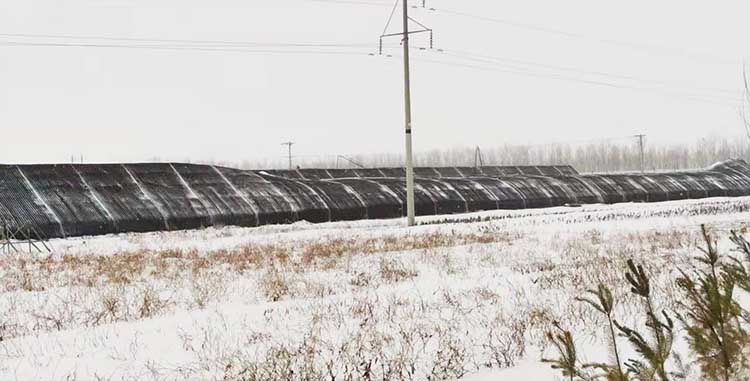 3、保溫性:雙膜單被,隔熱保溫好。晴天,外界-30℃下,棚內(nèi)溫度可以達(dá)到8℃以上。冬季不加溫可以進(jìn)行果菜類生產(chǎn)。